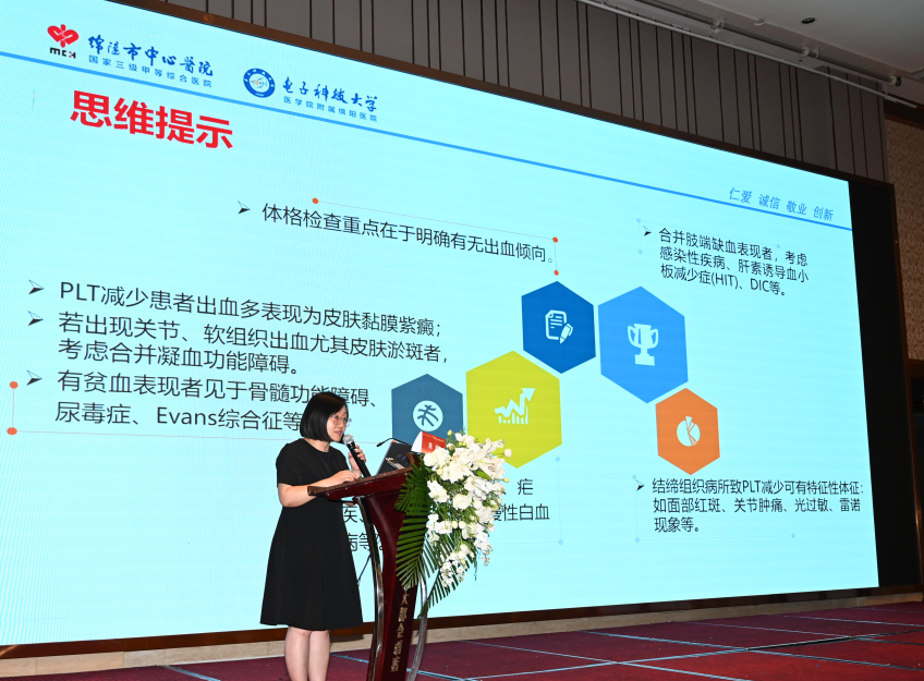 陳曦老師進行了題為“一波三折的血小板”的病例匯報,主要從病例簡介、病史、相關檢查、診斷思路、治療過程等幾個大方面進行了深入細致地剖析。陳老師通過自己多年的臨床實踐,精心篩選了一個特殊病例,與大家進行詳細的解析,如抽絲剝繭般將雜亂無序地蛛絲馬跡,梳理成一條條思維清晰、邏輯縝密的臨床診療思路,多維度地拓寬了臨床思維。最后,指出《2020版中國成人血小板減少癥診療專家共識》里明確提出,對血小板減少癥的診療應注重病因診斷,比如,要詳細明確具有針對性的病史詢問和檢查,仔細詢問既往史、用藥史、家族史等信息。除此之外,完善相關實驗室檢查,尤其免疫學相關檢查對于血小板減少癥的診療也意義重大。