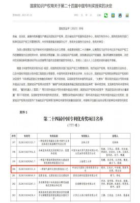 中國專利獎是我國專利領域的最高獎項,自1989年創立,迄今已成功舉辦24屆專利獎評選,遴選出一系列創新質量高、運用效益好、示范效應強的專利項目,生動展現了我國知識產權事業發展的質量導向、質量追求和質量成效,具有極高的公信力、代表性和影響力。